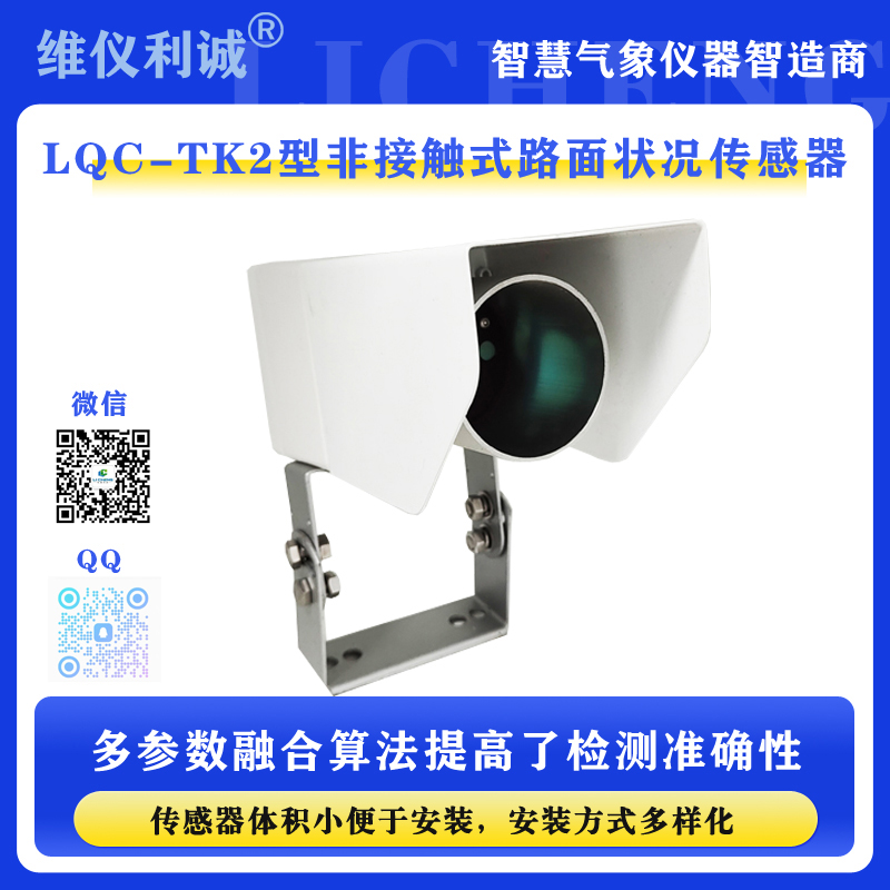 LQC-LK2型路面状况传感器是一款非接触式路面状态检测器,它采用遥感技术,避免了对道路的破坏,从而不会因为安装道路气象站引起的对交通的干扰。多光谱测量技术使得能准确检测出道路表面结冰、积雪和积水的厚度。